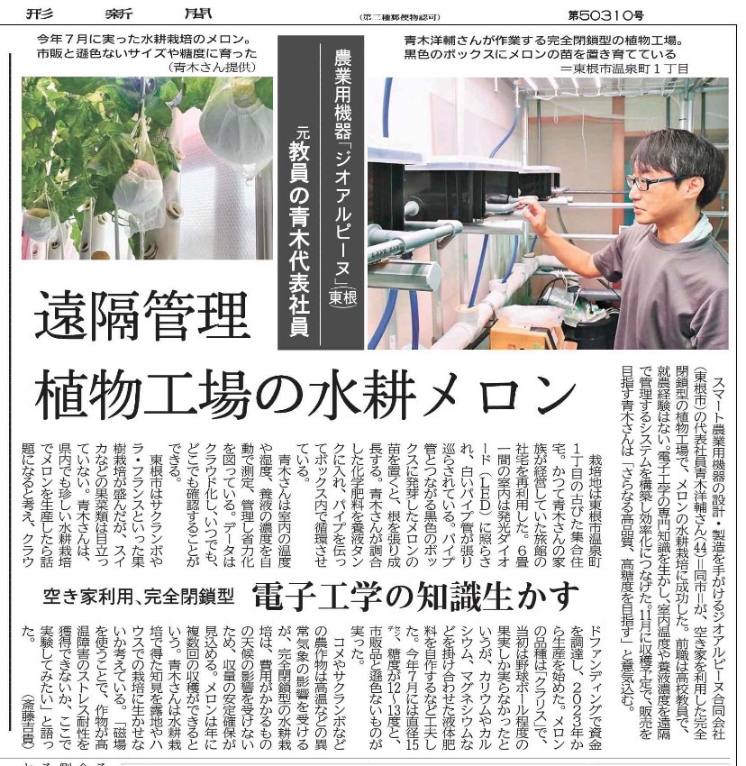 9月21日に弊社水耕メロン実験場が山形新聞様に掲載されました。